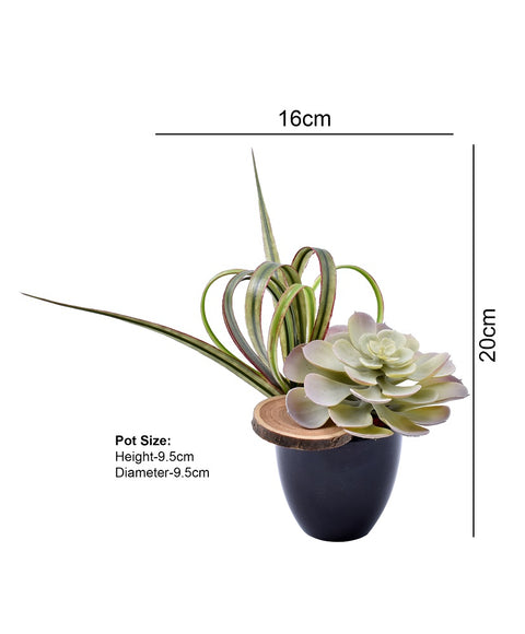 - نبات عصاري اصطناعي صغير أنيق باللون الرمادي مع شرائح خشبية:مزيج مثالي بين الطبيعة والأناقة، مثالي لأي ديكور.