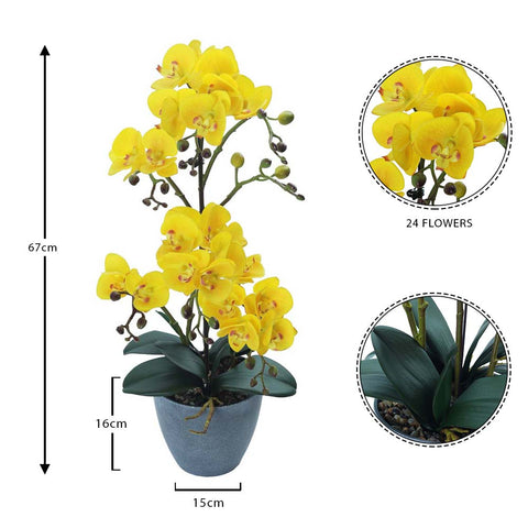 - The artificial orchid plants in pots are easy to place and require no watering or special care.