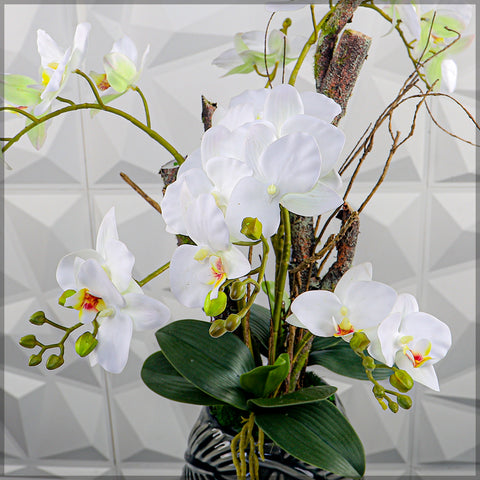 - This elegant orchid flowers arrangement white is designed to bring a calming, luxurious touch to your interiors. With lifelike petals and natural colors, it's ideal for those who appreciate beauty and simplicity.