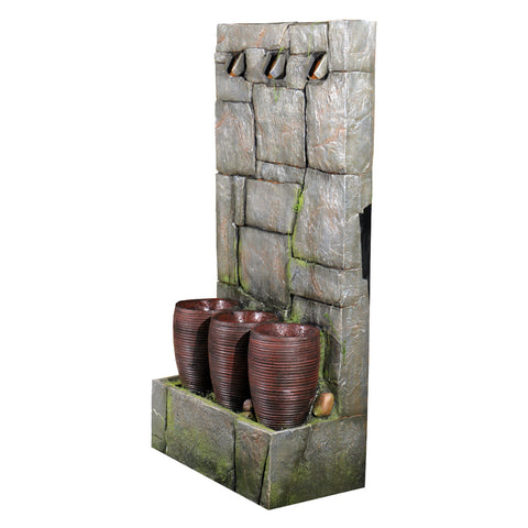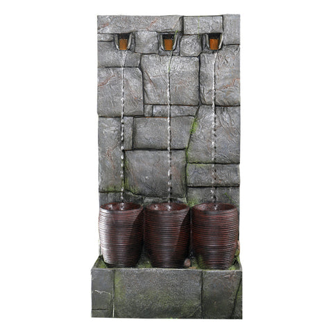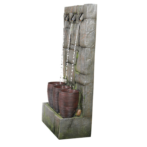 - The Decorative Pots Wall Fountain features a cascading water flow from beautifully designed ceramic pots, creating a relaxing ambiance.