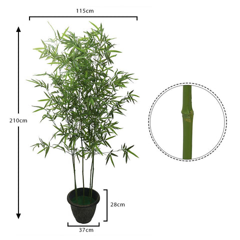 Design: This artificial bamboo tree 2.1 m stays forever green with lush, elegant green leaves. It is designed with fine detailing to lend it a realistic artificial bamboo tree 2.1 m look and is placed in a lovely pot to accentuate its attractive appearance.