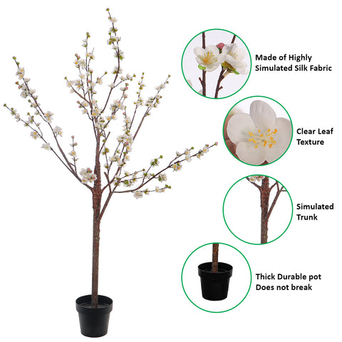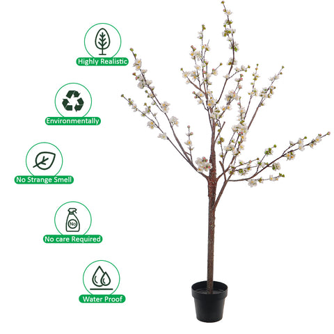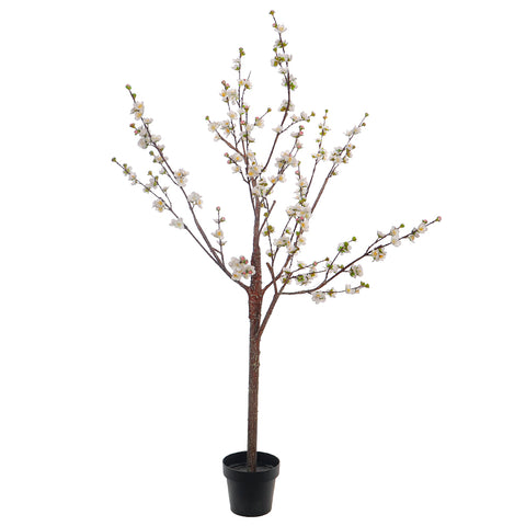 White Decorative Artificial Cherry Blossom Plant(with black nursery pot)