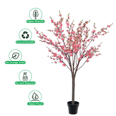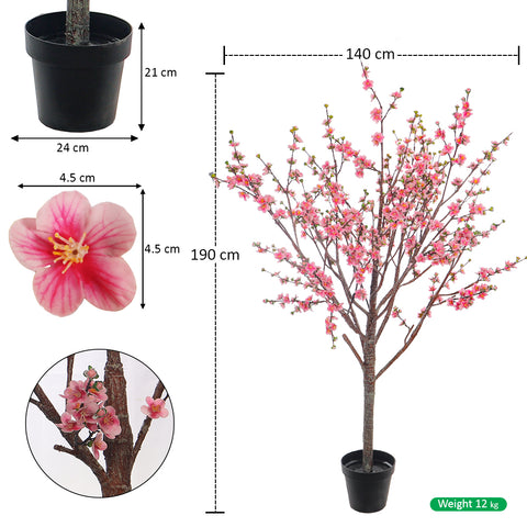 Pink Decorative Artificial Cherry Blossom Plant(with black nursery pot)