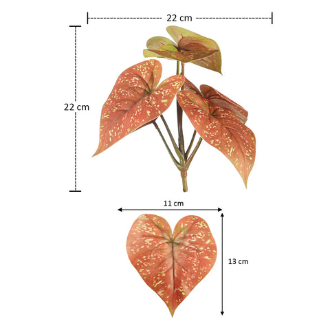 - Transform your home or office with the elegant charm of fake caladium plant leaves. Designed with precision to mimic the beauty of natural caladium, these artificial caladium leaves bring a tropical vibe to any setting. Perfect for creating eye-catching centerpieces, enhancing planters, or adding a lush green touch to your walls, these caladium plant fake leaves require no maintenance yet deliver year-round freshness.