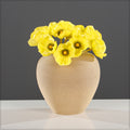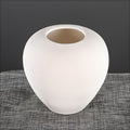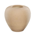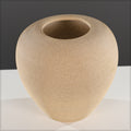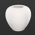 A rounded, short vase with a wide body and a narrow opening at the top. The vase has a smooth, organic shape resembling a pot or urn, with gently curved sides. It features a light beige or sandy color or white and fine horizontal ridges that give it a subtle, textured finish. Its natural tone and minimalist design make it ideal for earthy, rustic, or contemporary interior decor.