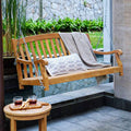 - 2 PEOPLE CAPACITY - This beautiful acacia wooden garden swing is a special piece for your garden. Made from high-quality acacia wood and treated with oil for durability, this wooden porch swing with stand offers comfortable seating for two. Whether in the shade of a tree or at a romantic spot, enjoy your time with loved ones on this wooden 2 person swing.