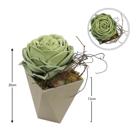 - Crafted to mimic the appearance of a real succulent, this faux green succulent in pot adds a realistic touch to your space.
