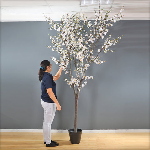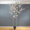 - This decorative plant features realistic white cherry blossoms and a lifelike trunk, designed to mimic the appearance of a real cherry blossom tree in bloom.