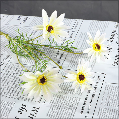 Enhance your space with the elegance of nature by choosing the 4 heads nearly natural daisy flower stem, ideal for brightening up any room with long-lasting beauty.