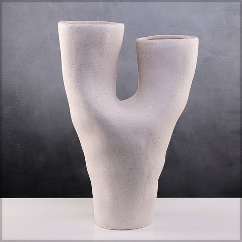 • With its distinctive vessel design, this sculptural ceramic vase adds personality and sophistication, seamlessly blending into various decor styles.
