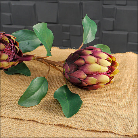 - Transform any space with the stunning beauty of our Artificial King Protea Flower. Known for its unique and bold appearance, this silk king protea bloom captures the essence of the exotic with vibrant petals and realistic texture. Whether you choose the faux king protea stem as a standalone piece or incorporate it into an arrangement, this fake protea flower provides a striking tropical flair to any decor style.