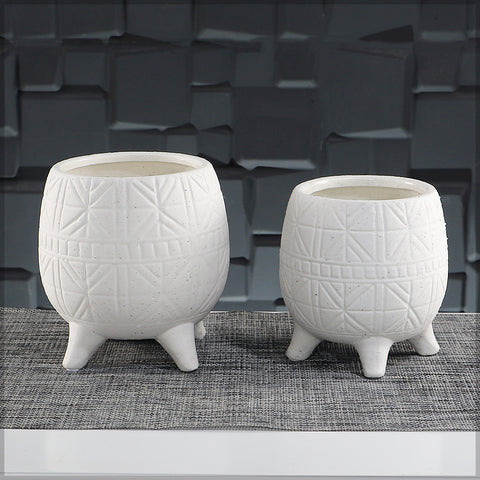 - This minimalist ceramic footed planter features a clean, elevated design that complements modern and Scandinavian-style interiors.