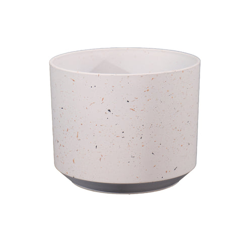 - Designed to complement modern white round plastic planters, these pots suit contemporary and Scandinavian themes.