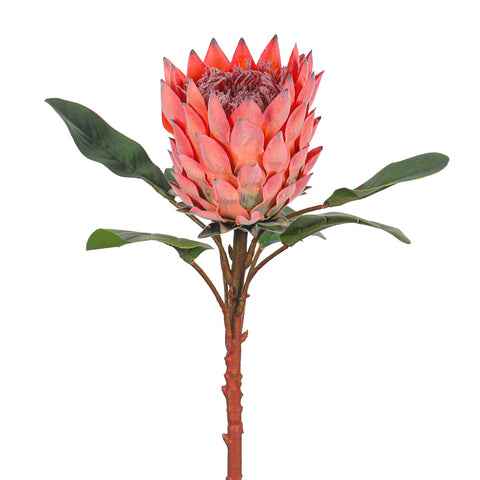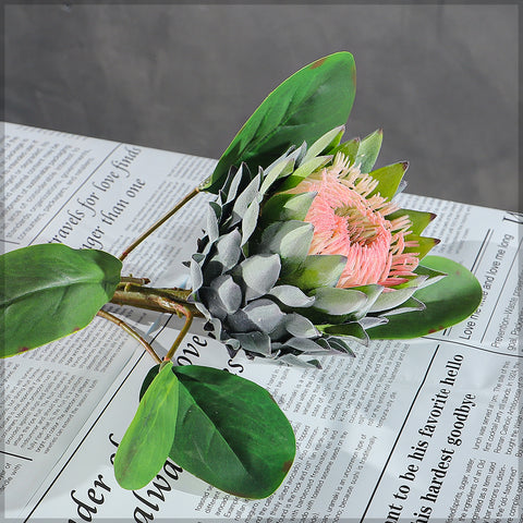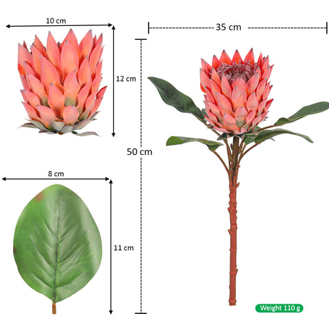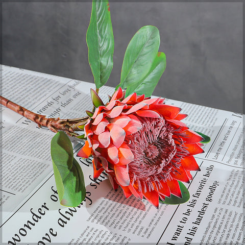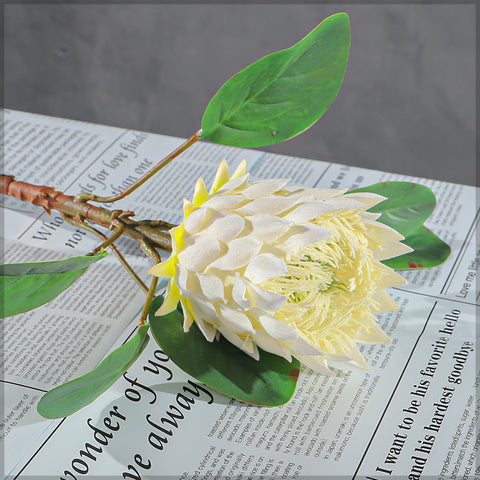 Realistic Flower King Protea SingleStem with Green Leaves(without vase)