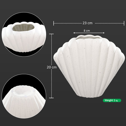 - Crafted from high-quality ceramic, this white ceramic vase features an elegant shell-inspired shape that elevates any space. Whether you display fresh flowers, a plant, or leave it as a statement piece, the vase adds texture and charm to your home. The decorative shell design vase creates an inviting atmosphere, making it ideal for beach houses or modern coastal decor enthusiasts.